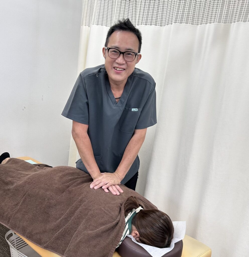 施術では首・肩の筋緊張緩和に加え、姿勢改善を中心にアプローチ。